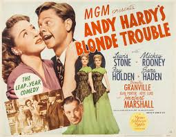 Somente em maio de 1944 o número treze da série Andy Hardy prefere as louras / Andy Hardy´s Blonde Trouble chegou às telas. Agnes Christine Johnston, foi acompanhada por Harry Ruskin e William Ludwig e o roteiro deles focalizou Andy frequentando Wainright, uma faculdade diferente da do último filme, onde seu pai estudou e cujo reitor era interpetado por Herbert Marshall. Andy se envolve com a estudante universitária Kay Wilson (Bonita Granville) – que tem uma queda pelo reitor – e duas louras gêmeas interpretadas por Lee e Lyn Wilde. Keye Luke também aparece como “Dr. Lee”. Último filme da série dirigido por George Seitz.