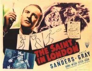 SAINT, THE – A série propriamente dita do personagem criado por Leslie Charteris (Leslie Charles Bower Lin) foi a da RKO, iniciada e terminada com Louis Hayward no papel do galante detetive Simon Templar, mas com George Sanders identificando-se mais com o herói em cinco filmes intermediários.Em 1941, Hugh Sinclair estrelou dois filmes da série, porém um deles (O Santo Enfrenta o Tigre) não chegou a ser lançado pela RKO – foi vendido para a Republic, que o exibiu em 1943. No rádio, a partir de 1944, Templar recebeu as vozes de Edgar Barrier, Brian Aherne, Vincent Price, Tom Conway e Barry Sullivan. Uma das características do Santo, além do seu cartão de visita original, era a melodia que ele assobiava, geralmente ouvida durante a projeção dos créditos do filme e a introdução de suas aventuras radiofônicas.