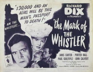 THE WHISTLER – Personagem conhecido apenas como The Whistler ( voz de Otto Forrest) é o apresentador e narrador desta série oriunda do rádio. Filmes: 1944 – ESTA NOITE MORRERÁS / The Whistler, LEGADO PERIGOSO / The Mark of the Whistler. 1945 – O CRIME DO FAROL APAGADO / The Voice of the Whistler, ALMA SATÃNICA / The Power of the Whistler. 1946 – O INTRUSO MISTERIOSO / Mysterious Intruder. 1947 – A PÁGINA DENUNCIADORA / The Secret of the Whistler, ASSALTO NAS TREVAS / The Thirteenth Hour. 1948 – A CONSCIÊNCIA ACUSA / The Return of the Whistler.