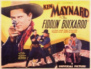 Em 1988, Gil de Azevedo Araújo, Danilo Dieguez e eu elaboramos uma filmografia de Ken Maynard, publicada na revista Cinemin nº42 (Editora EBAL), que agora revisei, acrescentando mais títulos em português. Vi apenas onze filmes de Maynard (A Horda Vermelha, O Prêmio do Amor,Rancho Dinamite e Tarzan, o Cavalo Selvagem: Luta de Vingança, o seriado O Mistério da Montanha, Santa Fe, Cavaleiro Furacão, Ódio e Vingança, O Relâmpago das Campinas e Rumo ao Oeste). Dos que eu vi, os meus preferidos são: Horda Vermelha e Tarzan, O Cavalo Selvagem. 1924 – JANICE MEREDITH / Janice Meredith; Filmes mudos para a Davis e First National: O PRÊMIO TENTADOR / $50.000 Reward. 1925 – CORAGEM DE LUTADOR / Fighting Courage; O DEMÔNIO DO GALOPE / The Demon Rider. 1926 – ESTRELA DO NORTE / North Star; SONHANDO ACORDADO / The Grey Vulture; O RANCHO DOS FANTASMAS / The Haunted Range; O CAVALHEIRO INCÓGNITO / The Unknown Cavalier; O DESTEMIDO / Senor Daredevil. 1927 – SELVAS E CONQUISTAS / The Overland Stage; TERRORES DA FRONTEIRA / Somewhere in Sonora; TERRA DE NINGUÉM / The Land Beyond the Law; A SELA DO DIABO / The Devils Saddle; A HORDA VERMELHA / The Red Raiders; O EVANGELHO DE FOGO / Gun Gospel. 1928 -TRATO É TRATO / The Wagon Show; O VALE DA AVENTURA / The Canyon of Adventure; O CAVALEIRO DA ESPERANÇA / The Upland Rider; TIRANDO A LIMPO / Code of The Scarlet; A GLORIOSA JORNADA / The Glorious Trail; A CIDADE FANTASMA / The Phantom City. 1929 – A TODA A BRIDA ou À RÉDEA SOLTA / Cheyenne; LEGIÃO SUSPEITA / The Lawless Legion; MALA DA CALIFÓRNIA / The California Mail; CAVALEIRO REAL / The Royal Rider; Filmes mudos, parcialmente falados, primeiros falados na Universal: OS CARGUEIROS DO DESERTO / The Wagon Master; O PRÊMIO DO AMOR / Senor Americano. 1930 – PARADA DO OESTE / Parade of the West; SELA DA SORTE / Lucky Larkin; A LEGIÃO DOS HERÓIS / The Fighting Legion; MISSÃO DE VINGANÇA / Mountain Justice; AUDAZ CAVALEIRO / Song of the Caballero; AMIZADE REDENTORA / Sons of the Saddle; Filmes na Tiffany: LUTA DE VINGANÇA / Fightin’ Thru. 1931 – SOMBRAS DA MORTE / Two-Gun Man; ÓDIO E VINGANÇA / Alias the Bad Man; O TERROR DO ARIZONA / Arizona Terror; A LEI DAS MONTANHAS / Range Law; HOMENS MARCADOS / Branded Men; O CRIME DO RENEGADO / Pocatello Kid. 1932 – EMBOSCADA FATAL / Sunset Trail; UM TEXANO VALENTE / Texas Gunfighter; HERÓI DA FRONTEIRA / Whistling Dan; CORISCO DO INFERNO / Hell-Fire Austin; Filmes na KBS / World Wide: RANCHO DINAMITE / Dynamite Ranch; TARZAN, O CAVALO SELVAGEM / Come on, Tarzan; ENTRE LUTADORES / Between Fighting Men; O BANDIDO DO CAVALO BRANCO / Fargo Express; O FANTASMA DO DESFILADEIRO / Tombstone Canyon. 1933 – O DEFENSOR DA LEI / Drum Taps; O TERROR DO OESTE / Phantom Thunderbolt; VINGADOR SILENCIOSO / The Lone Avenger; Filmes na Universal, 2a fase:VENCEDOR MODESTO / King of the Arena; O ENVERGONHADO / The Fiddling Buckaroo; LUTA DE ASTÚCIA / Trail Drive; O SEGREDO DAS SELVAS / Strawberry Roan; O PASSO FATAL / Gun Justice. 1934 – RODAS DO DESTINO / Wheels of Destiny; DÍVIDA DE HONRA / Honor of the Range; DESAFIANDO O PERIGO / Smoking Guns; Filmes na Mascot: SANTA FE / In Old Santa Fe; O MISTÉRIO DA MONTANHA / Mystery Mountain (Seriado). Filmes na Columbia: 1935 – EM CAMINHO DO OESTE / Western Frontier; CORAGEM DO SERTÃO / Western Courage; APUROS DE HERDEIRO / Heir to Trouble; SALTEADORES DO DESERTO / Lawless Riders. 1936 – LADRÃO DE GADO / The Cattle Thief; HERÓIS DA SERRA / Heroes of the Range; ÁGUAS VINGADORAS / Avenging Waters; O XERIFE FUGITIVO / Fugitive Sheriff. 1937 – Filmes na Grand National: PROCURANDO CONFUSÃO / Trailing Trouble; DESTINO TRAÇADO / Boots of Destiny. 1938 – CAVALEIRO FURACÃO / Whirlwind Horseman; XERIFE MATA SEIS / Six Shooting Sheriff. 1939 – Flaming Lead. 1940 – O RELÂMPAGO DAS CAMPINAS / Death Rides the Range; FAZENDA ASSOMBRADA / Phantom Ranger; O RELÂMPAGO DE BOTAS / Lightning Strikes West. 1943 – Série Trail Blazers: O MISTÉRIO DO DESFILADEIRO / Wild Horse Stampede; NAS MALHAS DA LEI / The Law Rides Again; PISTOLAS FLAMEJANTES / Blazing Guns; VALE DA MORTE / Death Valley Rangers; RUMO AO OESTE / Westward Bound; FALSÁRIOS DO OESTE / Arizona Whirlwind. 1944 – Filme na Mattox: Balas e Violões / Harmony Trail. 1970 – Aparição como convidado: Bigfoot.
