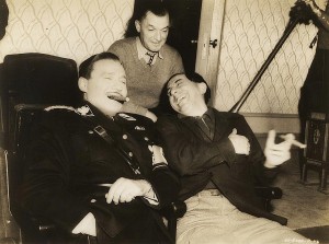 Em outro trecho marcante, Edward Everett Horton como o Embaixador Popoff, encarregado de vigiar os passos de Danilo, recebe uma carta do rei em código e ordena ao criado Zizipoff (Herman Bing), que a traduza de acordo com o manual … escrito nos punhos de sua camisa. Bing, com exagerado e engraçadíssmo sotaque alemão, arrastando os vocábulos, diz que a primeira palavra em código, ˜Darling”, significa “De todos os idiotas do serviço diplomático, você é o pior”. No decorrer da leitura da missiva, quanto mais belas as palavras, maiores as espinafrações. Na medida em que Bing vai lendo, ele se empolga e esquece sua inferioridade hierárquica falando a Horton como se fosse o irritado signatário. Horton (com Lubitsch antes em Ladrão de Alcova e Sócios no Amor e posteriormente em Anjo e A Oitava Esposa do Barba-Azul), foi inegavelmente um dos grandes atores de composição do cinema americano, especialista no double –take e uma figura tipicamente lubitscheana. Na sua admiração pelo diretor, ele exclamaria numa entrevista: “Lubitsch era um gênio, sabe? Simplesmente um gênio”.