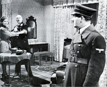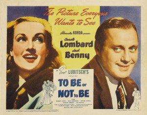 Melchior Lengyel, que havia suprido Lubitsch com uma sátira ao comunismo em Ninotchka, trouxe-lhe uma caricatura do nazismo em chave de propaganda, Ser ou Não Ser / To Be or Not To Be / 1942, semelhante à de Chaplin em O Grande Ditador / The Great Dictator / 1940. Em Varsóvia, Maria e Josef Tura (Carole Lombard e Jack Benny), um casal de artistas poloneses egocêntricos e temperamentais, estão sempre em rivalidade. Fascinada por um jovem aviador, Sobinski (Robert Stack), Maria pede-lhe que, no exato momento da récita do marido do famoso solilóquio de Hamlet, ele saia da platéia, e vá se encontrar com ela no camarim. Além da pequena infidelidade, o propósito de Maria é ferir a vaidade de Joseph como ator. De fato, ele fica indignado ao ver o aviador levantar da poltrona e se retirar no meio da sua representação. Posteriormente, os alemães ocupam a cidade e Sobinski fica sabendo da existência de um espião a serviço dos nazistas disfarçado de líder da Resistência, Professor Siletsky (Stanley Ridges). Com a ajuda de Tura e sua trupe, ele arma uma cilada para o impostor, com os atores fazendo-se passar por soldados alemães. Depois de muitas peripécias e liquidado o traidor, todos escapam de avião para Londres, onde Tura sempre sonhara interpretar Hamlet. Quando, em um palco londrino, Tura pronuncia o célebre “Ser ou não Ser”, olha para a platéia, e percebe Sobinski assistindo calmamente ao espetáculo. Desta vez não é o aviador mas um jovem oficial da Marinha que se levanta e deixa o teatro.