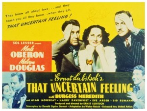 Deixando a Marca do Leão, Lubitsch cuidou de dois filmes distribuídos pela United Artists. O primeiro, Que Sabe Você do Amor? / That Uncertain Feeling / 1941, era uma refilmagem de Beija-me Outra Vez com argumento modernizado e transplantado de Paris para Nova York, conforme o script de Walter Reisch e Donald Ogden Stewart. Disposta a curar seus soluços, Jill Baker (Merle Oberon) procura um psicanalista e este a convence de que o marido, o corretor de seguros Larry Baker (Melvyn Douglas) é a causa de tudo. Na sala de espera do consultório, Jill conhece um sujeito estranho, misantropo e insolente, o pianista Alexander Sebastian (Burgess Meredith), cujo assédio ao lar dos Baker provoca o divórcio do casal. Mais tarde, Jill percebe que Larry ainda a ama e volta para ele.