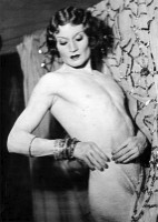 BARBETTE (Vander Clyde, 1904-1973) – Como transformista, Barbette era único, porque aparecia como uma extraordinária mulher trapezista, eletrizando as platéias do vaudeville dos anos dez e deliciando a sociedade parisiense nos anos vinte. Aos quatorze anos de idade, Vander Clyde respondeu um anúncio colocado por uma das Alfaretta Sisters, que eram conhecidas como “Word Famous Aerial Queens”. Uma das irmãs havia falecido e a outra estava procurando um parceiro. Ela explicou ao rapaz que o público ficava mais impressionado com mulheres trapezistas e sugeriu que ele se vestisse como uma moça. Aos poucos, Barbette desenvolveu um número sozinho e logo se tornou uma grande atração. Em 1923, apresentou-se no casino de Paris e foi o sucesso da noite, aparecendo num vestido branco coberto de penas de avestruz e terminando seu número com um “chute d’ange” do trapézio para o tapete branco do palco. Quando ele tirou sua peruca e tomou a posição de um pugilista profissional, a platéia ficou enlouquecida. Nos anos seguintes, Barbette foi um dos astros mais populares do cabaré na França. Seu amigo, Jean Cocteau, disse: ”Ele é um anjo, uma flor, um pássaro”. Em 1930, o cineasta colocou Barbette travestido no seu filme Le Sang d’un Poete. O filme de Hitchcock, Murder! / 1930, apresenta um trapezista homossexual transformista como o assassino e não resta dúvida de que este personagem foi baseado em Barbette.