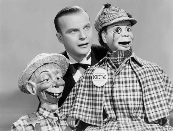 EDGAR BERGEN (Edgar Breggen, 1903-1978). Americano de origem sueca, Bergen divertiu o público com os seus bonecos Charlie McCarthy e Mortimer Snerd, que eram seus alter egos. Quando ele fazia seu número de ventríloquo as pessoas se encantavam com o seu humor gentil e se esqueciam de que seus lábios se moviam. Em 1930, Bergen e Charlie fizeram a sua primeira aparição numa série de filmes curtos da Vitafone porém a grande chance para a dupla chegou em 1936, quando eles apareceram como convidados no programa de rádio de Rudy Vallee. Em 1937 Bergen e Charlie iniciaram o seu próprio programa radiofônico, que ficou no ar pelos próximos vinte anos. No rádio, Bergen introduziu outros bonecos como Effie Klinger; Ophelia; Maisie e Matilda; Podine Puffington; Lars Lindquist; e Gloria Graham. Depois de participar de vários filmes, inclusive como coadjuvante sem o boneco, Bergen anunciou seu afastamento do show business e que Charlie McCarthy seria legado ao Smithsonian Institution. Charlie retrucou: “Bem, pelo menos eu não serei o único boneco em Washington”. Filmes: Goldwyn Follies / The Goldwyn Follies / 1938; Um Dia de Promessa / Letter of Introduction / 1938; Quem Mal Anda, Mal Acaba / You Can’t Cheat an Honest Man / 1939; Charlie McCarthy Detetive / Charlie McCarthy Detective / 1939; Quem Se Ri Por Último / Look Who’s Laughing / 1941; Ursadas e Peruadas / Here We Go Again / 1942; Noivas de Tio Sam / Stage Door Canteen / 1943; Viva a Juventude / Song of the Open Road / 1944; Pongo / Fun and Fancy Free / 1947; A Vida de um Sonho / I Remember Mama / 1948; Capitão China / Captain China / 1949; One – Way Wahine / 1966; Não Faça Onda / Don’t Make Waves / 1967. Cameos: Conjunto de Espiões / The Phynx / 1970; Won-Ton-Ton o C Won Ton Ton – The Dog That Saved Hollywood / 19 76; The Muppet Movie / 1979.