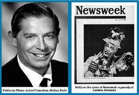 MILTON BERLE (Milton Berlinger, 1908- 2002) – Berle entrou para o vaudeville ainda criança e teve sua grande chance na nova montagem de “Florodora” como parte de um Baby Sextette, seis meninos e meninas que cantavam a canção de sucesso do espetáculo, “Tell Me Pretty Maiden”. Em 1921, ele formou uma dupla com Elizabeth Kennedy em um número de vaudeville intitulado Kennedy e Berle Berle estreou sozinho em 1924 e foi adquirindo popularidade, passando depois a atuar em boates, onde suas piadas eram ajustadas deliberadamente para insultar os fregueses. Por exemplo, ele se dirigia a um dos frequentadores do local e dizia: “Oh, temos novidade; o senhor está acompanhado de sua esposa”. No rádio, ele ficou no ar de 1934 a 1948. Seu programa mais conhecido foi a série “Let Yourself Go”, que encorajava o ouvinte a fazer exatamente aquilo e a expressar seus desejos secretos. Berle esteve nas telas desde o cinema mudo, fazendo “pontas” no seriado de Pearl White, The Perils of Pauline e em outros filmes rodados em Fort Lee, New Jersey. Porém o seu maior êxito foi na televisão no “The Texaco Star Theater”, que depois se chamou “The Milton Berle Show” e assim continuou até 1956, quando foi cancelado. Ele praticamente dominou a televisão entre 1948 e 1956 a ponto de ser nomeado “Mr. Television” ou, mais afetuosamente, “Tio Miltie”. Filmes sonoros: Caras Novas de 1937 / New Faces of 1937; Folias de Radio City / Radio City Revels / 1938; Alto, Moreno e Simpático / Tall, Dark and Handsome / 1941; Quero Casar-me Contigo / Sun Valley Serenade / 1941; O Bamba da Pelota / Rise and Shine / 1941; Um Blefe Formidável / A Gentleman at Heart / 1942; Veleiro Fantasma / Whispering Ghosts / 1942; Over My Dead Body / 1942; Um Pequeno Erro / Margin for Error / 1943; O Mundo de um Palhaço / Always Leave Them Laughing / 1949; Deu a Louca no Mundo / It’s a Mad, Mad, Mad., Mad World / 1963; Confidências de Hollywood / The Oscar / 1965; O Ente Querido / The Loved One / 1965; Don’t Worry We’ll Think of a Title / 1966; Acontece Cada Coisa / The Happening / 1967; Quem está Guardando esta Erva? / Who’s Minding the Mint? / 1967; For Singles Only / 1968; Can Heironymous Merkin Ever Forget Mercy Humppe and Find True Happinness? / 1969; Regresso ao Mundo Maravilhoso de Oz / Journey Back to Oz (somente a voz do Leão Covarde) / 1974; Lepke / Lepke / 1975; Won Ton Ton – O Cachorro Que Salvou Hollywood / Won Ton Ton – The Dog That Saved Hollywood / 1976; O Mundo Mágico dos Muppets / /The Muppet Movie / 1980; Broadway Danny Rose / Broadway Danny Rose / 1984; As Loucuras de Jerry Lewis / Smorgasbord / 1985; Driving me Crazy / 1992; Storybook / 1996.