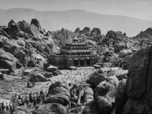 As locações de Gunga Din, uma história livremente adaptada do poema de Rudyard Kipling passado na India, foram rodadas numa região campestre perto de Long Pine., California. Os cenários de Polglase e Perry Ferguson – casa colonial britânica, barracas do exército, templo indiano e pequena aldeia construída em frente de uma montanha e num terreno árido – não eram meramente um pano de fundo exótico mas verdadeiros cúmplices nas maravilhosas cenas de aventura que estavam no âmago do filme. Com exceção do canyon e da ponte oscilante (uma miniatura) que conduzem ao grande templo, foram dispensados os mattes ou efeitos especiais; até os telhados da aldeia eram de verdade, a fim de que as lutas e saltos audaciosos dos heróis pudessem ser encenados em cima deles.
