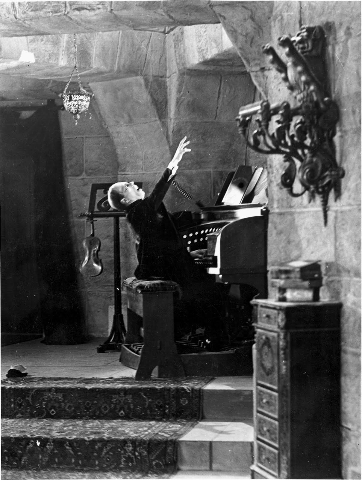 Os sets mais famosos de Hall para esse ciclo são o castelo gótico de Drácula, assimétrico, escuro e parcialmente em ruínas e o laboratório com a torre elétrica e os instrumentos científicos “futuristas” (providenciados por Kenneth Strickfaden) usado em Frankenstein e preservado para a filmagem de A Noiva de Frankenstein.