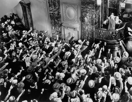 Goosson pesquisou intensamente a fim de reconstituir em Loucura Americana um banco do tempo da Depressão, com altas pilastras de mármore, portas pesadas de bronze, réplicas de ornamentos romanos e espaçoso salão central para acomodar as cenas de multidão importantes na história.