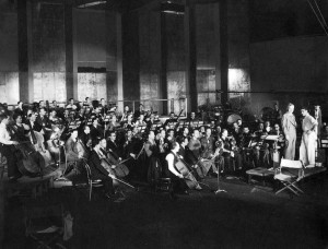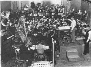 Inicialmente, o fundo musical dos filmes era limitado à apresentação do letreiros ou quando se mostrasse a fonte: uma orquestra ou piano, um rádio ou vitrola, ou a voz de um cantor, etc. tinham que aparecer na tela, para que as pessoas não ficassem sem saber de onde estava vindo a música. Era a chamada source music ou música diegética, uma música que faz parte da ação do filme. Porém logo se tornou claro que um fundo musical não diegético, ou seja, uma música cuja fonte não está visível no écran, era não somente essencial, mas também altamente benéfica para o filme.