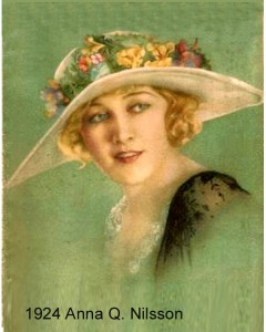 A sueca Anna Q. Nilsson (1888-1974) foi uma das maiores estrelas da cena muda, até que um acidente sofrido quando andava a cavalo em 1928, obrigou-a a limitar suas aparições na tela. Entre seus filmes mais memoráveis estava Os Espoliadores / The Spoilers / 1923, no qual ela aparecia como a dona de saloon Cherry Malotte. O “Q” no seu nome tem a ver com “Quirentia”, tendo sido baseado no dia em que ela nasceu, Dia de São Quirino. Mas é claro que o estúdio procurou tirar proveito da letra Q, divulgando que ela dizia respeito à “qualidade” de suas performances. Em 1950, Anna foi vista numa ponta em Crepúsculo dos Deuses / Sunset Boulevard. Na Inglaterra, foi a estrela de Três Fantasmas Vivos / Three Live Ghosts (1922) com Norman Kerry e O Compatriota / The Man from Home (1922) com James Kirkwood.