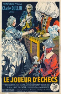 Extraído, como O Milagre dos Lobos, de um romance de Henry Dupuy-Mazuel, o argumento de O Jogador de Xadrez / Le Joueur d’Échecs / 1926 retoma um certo número de ingredientes que haviam feito o sucesso de seu predecessor, transpostos desta vêz para a Polonia – a promessa inicial de se limitar à História da França tendo sido rapidamente esquecida. No ambiente da Polonia de 1776 (cujo território, após 1772, foi repartido entre a Rússia, a Austria e a Prússia), tendo como cenário a luta contra a Rússia de Catarina II, desenvolve-se uma história amplamente romanceada, onde se encontra uma heroína simbolizando a unidade nacional e a luta pela independência, um amor contrariado pela guerra, cenas espetaculares de batalha, assim como um toque de irrealidade.