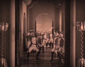 Durante toda a cena da festa organizada por Charles le Téméraire, englobando a representação de “Le Jeu d’Adam”, um “mistério” medieval baseado na história de Adão e Eva (cujos décors foram concebidos por Robert Mallet-Stevens, o arquiteto mítico dos anos 20) a simultaneidade das ações enriquece a trama e a torna mais complexa. As imagens do “Jeu d’Adam” e os regozijos, filmados de diversos pontos de vista, se misturam e correspondem às imagens ilustrando as relações entre os principais protagonistas, todos reunidos naquele lugar (Louis, Charles, Jeanne, Robert, du Lau). A vida real, o espetáculo, a festa parecem se fundir em um único movimento: o público que assiste a representação se volta para aclamar Louis como se ele fosse um dos atores.