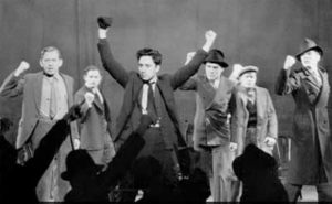 Em 1935, Kazan causou forte impressão na peça “Waiting for Lefty” de Clifford Odets. Ele sempre a considerou como a noite mais excitante que experimentou no teatro. A ação central é simples: os membros de um sindicato de taxistas estão aguardando a chegada de Lefty, seu presidente, que irá determinar se eles vão entrar em greve. Após várias vinhetas, chega-se ponto mais emocional do espetáculo, uma cena na qual um membro aparentemente sincero do sindicato pede cautela aos seus companheiros – mas é denunciado pelo seu próprio irmão como espião dos patrões. É Elia Kazan, que desde as primeiras cenas estava sentado na platéia usando um boné de pano com um pé de coelho no visor para dar sorte (ele havia visto um taxista de verdade usando um boné idêntico), que sobe ao palco para identificar o traidor, recebendo uma chuva de aplausos como nunca vira antes. No climax da peça, quando é anunciado que Lefty foi assassinado, Agate, o mais raivoso e o mais radical dos membros do sindicato se dirige a seus camaradas para a greve, e depois pergunta para o público: “Bem, qual é a resposta?”, coube a Elia Kazan, que já estava de novo no auditório, subir mais uma vez ao palco, erguer seu braço com o pulso fechado, e gritar “Greve!”. Nessa noite, o público se levantou com ele, ecoando seu grito, e não sairam do teatro quando a peça terminou. A cortina não baixou por cerca de 45 minutos enquanto as pessoas, entusiasmadas, aplaudiam e batiam com os pés no chão.