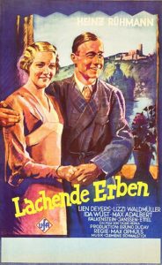 Conheço apenas um trecho de Lachende erben / 1933 (Herdeiros Sorridentes), a terceira comédia que Ophüls fez na UFA. É a história de um rapaz, Peter Frank (Heinz Rühman), que herda do tio uma vinícula, sob a condição de que não poderá consumir bebida alcoólica durante um mês. Como Peter não tem a reputação de ser sóbrio, as tentações se multiplicam, e ainda por cima ele se apaixona pela filha (Lien Deyers) de seu principal competidor. Nas cenas que pude ver, não identifiquei a marca do estilo ophulsiano, porém elas prometiam uma boa diversão.