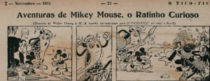 Nos quadrinhos, o personagem apareceu pela primeira vez no Brasil no Tico-Tico, com o título de Aventuras do Ratinho Curioso, aparecendo depois v. g., na Gazetinha, Suplemento Juvenil, Mirim, O Lobinho, Guri, Gibi, Albuns das Edições Melhoramentos, Seleções Coloridas da EBAL, e em revista própria da Editora Abril. A partir de julho 1942, O Suplemento Juvenil, O Mirim e O Lobinho patrocinaram todos os filmes da Walt Disney exibidos no Cineac-Trianon do Rio de Janeiro, colaboração eficiente entre aquele cinema de filmes curtos tão a gôsto da meninada e as três revistas que lideravam a imprensa infantil.