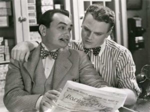 Aquela Mulher! / Manpower / Warner (Dir: Raoul Walsh) como Hank “Gimpy” McHenry, um dos dois eletricistas que disputam a mesma mulher (ela é Marlene Dietrich e o outro, George Raft); A Suprema Cartada / Unholy Partners / MGM (Dir: Mervyn LeRoy) como Bruce Corey, repórter que volta da guerra e funda um jornal financiado por um gângster (com Laraine Day, Edward Arnold, Marsha Hunt). 1942 – Vale a Pena Roubar? / Larceny, Inc. / Warner (Dir: Lloyd Bacon) como J. Chalmers “Pressure” Maxwell, ex-presidiário que abre uma loja de malas ao lado de um banco, para cavar um túnel e chegar ao cofre; a loja prospera e ele descobre que a vida honesta até que não é má (com Jane Wyman, Broderick Crawford, Jack Carson); Seis Destinos / Tales of Manhattan / 20thCentury-Fox (Dir: Julien Duvivier) como Avery “Larry” Browne, mendigo alcoólatra convidado para uma reunião de ex-alunos (com George Sanders, James Gleason). 1943 – Destroyer / Destroyer / Columbia (Dir: William A. Seiter) como Steve Boleslavski, soldador de estaleiro naval de meia idade que se alista para servir no navio que ele ajudou a construir e se distingue em ação (com Glenn Ford, Marguerite Chapman); Mistérios da Vida / Flesh and Fantasy / Universal (Dir: Julien Duvivier) como Marshall Tyler, advogado que, segundo um quiromante previu, vai matar alguém (com Thomas Mitchell, Anna Lee, C. Aubrey Smith).
