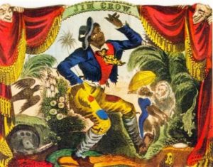 O jim crow nasceu quando, em 1830, um ator branco, Thomas “Daddy” Rice, escureceu o rosto com milho queimado e dançou de maneira saltitante enquanto entoava as letras de “Jump Jim Crow” (Jim Crow Saltitante), canção muito popular entre os escravos. O zip coon era o dândi negro urbano, escravo libertado que se vestia de modo extravagante, procurando se parecer como um branco afluente, sem se dar conta do ridículo.