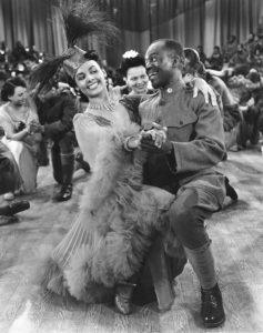 Nos meados dos anos 30, quando a era do suíngue atingiu o auge, os negros foram mais do que nunca empregados como musical entertainers nos filmes de Hollywood, destacando-se Duke Ellington, Cab Calloway, Louis Armstrong, Lena Horne e Hazel Scott e, no início dos anos 40, surgiram dois filmes musicais só com atores negros: Uma Cabana no Céu / Cabin in the Sky / 1943 (com Ethel Waters como a boa esposa Petunia e Lena Horne como a tentadora Georgia Brown, e mais: Eddie Anderson, Louis Armstrong, Rex Ingram, Butterfly McQueen, Duke Ellington, Hal Johnson Choir, Manton Moreland, Willie Best, Ethel Waters, Oscar Polk, Ruby Dandridge (mãe de Dorothy), Kenneth Spencer) e Tempestade de Ritmo / Stormy Weather / 1943 (com Bill Robinson, Lena Horne, Fats Waller, Ada Brown, Nicolas Brothers, os dançarinos da trupe de Katherine Dunham, Cab Calloway, Dooley Wilson, o Sam do piano de Casablanca / Casablanca / 1942).