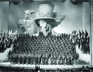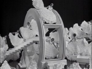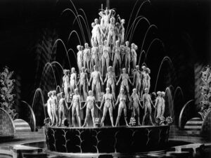 Hollywood começou a fazer também “comédias com música” em vez de comédias musicais como, por exemplo, os filmes dos irmãos Marx e Mae West. Eddie Cantor seguiu este modelo, beneficiando-se do concurso de Busby Berkeley, coreógrafo (na época chamado de diretor de dança) imensamente criativo, que marcou o percurso do filme musical, impondo-se como um dos gênios do cinema. Ele descobriu que a câmera tinha de dançar mais que os próprios dançarinos e, com extraordinária imaginação, elaborou um estilo incomparável. Busby acompanhava os bailarinos em travellings velozes, até chegar às tomadas de ângulo superior sobre os motivos geométricos de suas evoluções, que se compunham e se desmanchavam como em um caleidoscópio. Entre seus trabalhos, além de outros filmes com Cantor – O Homem do Outro Mundo / Palmy Days / 1931, O Meu Boi Morreu / The Kid from Spain / 1932, Escândalos Romanos / Roman Scandals / 1933 – estão suas obras-primas na Warner: Rua 42 / 42nd Street / 1933, Cavadoras do Ouro / Gold Diggers of 1933 / 1933 (inesquecíveis as dezenas de moças tocando violinos iluminados no número “Shadow Waltz”), Belezas em Revista / Footlight Parade / 1933 (memoráveis as coristas deslizando pelas cascatas na sequência “By the Waterfall”), Wonder Bar / Wonder Bar / 1934, Modas de 1934 / Fashions / 1934, Mulheres e Música / Dames / 1934, (fantástica imaginação visual no número “I Only Have Eyes for You”), Mordedoras de 1935 / Gold Diggers of 1935 etc.