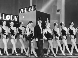 Melodia da Broadway inaugurou um subgênero: o backstage musical (musical de bastidores), no qual havia um fio de enredo, mostrando os testes, os ensaios e a estréia de uma grande revista da Broadway, incluindo uma corista que substitui a atriz principal no último minuto e se torna uma estrela. Outro backstage musical foi Toca a Música / On With the Show / 1929, que se notabilizou por ter sido o primeiro filme todo falado em technicolor de duas cores.