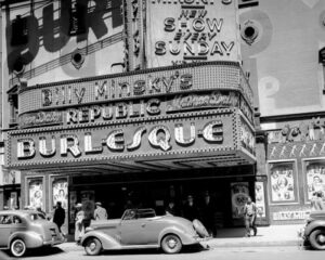 A porção burlesca do show de menestréis também se tornou um tipo próprio (e sem o rosto pintado de preto) lá pelo final dos anos 1880. Nas suas paródias os teatros burlescos frequentemente recorriam a um humor picante ou a uma linguagem irreverente e, eventualmente, uma troupe de artistas do sexo feminino fazendo strip-tease e cômicos interagindo continuamente com a platéia, tornaram-se a principal atração do espetáculo.