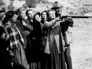 O Poder da Mulher / Westward the Women / MGM (western que se inicia quando, em Chicago, um rico fazendeiro da Califórnia, Roy Whitman (John McIntire), contrata o batedor Buck Wyatt (Robert Taylor) para guiar uma caravana de cento e quarenta mulheres, esposas por correspondência dos homens de seu rancho. Decidido a vencer todos os obstáculos, Buck impõe uma disciplina rígida. Na viagem, as mulheres aprendema lutar contra intempérie, a doença, a sede, os índios. Após este rito de passagem, conquistam o direito de não serem apresentadas imediatamente aos seus futuros parceiros: arrancando os toldos das carroças, elas confecionam seus vestidos e se tornam novamente femininas. A idéia de um comboio de futuras esposas enfrentando os perigos de uma travessia pelo deserto é original e Wellman trata o assunto com muita propriedade, providenciando as cenas de ação espetaculares, sem se esquecer do romance (o herói misógino também encontra a mulher de sua vida) nem a emoção (o silêncio sepulcral quando ressoam os nomes das mortas após o ataque de peles-vermelhas; a mulher que deu à luz durante o percurso e veio ao baile com seu bebê, sendo convidada para dançar). 1952 – Sem Pudor / My Man And I / MGM melodrama focalizando um trabalhador rural mexicano, Chu Chu Ramirez (Ricardo Montalban), que se orgulha de ter adquirido a cidadania americana e acaba arriscando perdê-la, ao ser falsamente acusado de ter tentado matar seu patrão (Wendell Corey).