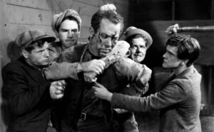 1943 – Consciências Mortas / The Ox-Bow Incident / 20th Century-Fox (western claustrofóbico propiciando uma reflexão sombria sobre a intolerância e um requisitório contra o linchamento, mostrando a insensibilidade humana e a histeria da multidão em uma comunidade da fronteira. Em Bridge’s Well, no Nevada, um grupo de cidadãos raivosos e neuróticos, tomando a lei em suas próprias mãos, enforca três suspeitos (Dana Andrews, Anthony Quinn, Francis Ford) de um roubo de gado, e depois descobrem que eles eram inocentes.Dois vaqueiros (Henry Fonda, Harry Morgan) que estão de passagem pela cidade, testemunham os fatos. Wellman faz uma descrição minuciosa e circunstanciada da expedição punitiva, imprimindo-lhe grande dramaticidade. O filme foi indicado ao Oscar; A Morte Dirige o Espetáculo / Lady of Burlesque / Hunt Stromberg Productions (parte comédia-dramática, parte musical, parte policial de mistério baseado em um romance atribuído à famosa stripper Gipsy Rose Lee, versando sobre o assassinato de duas dançarinas de striptease, ambas estranguladas com seus tapa-sexos. No elenco: Barbara Stanwyck, Michael O´Shea, J. Edward Bromberg, Frank Conroy, Iris Adrian, Charles Dingle. 1944 – Buffalo Bill / Buffalo Bill / 20th Century-Fox (cinebiografia romanceada de William Frederick Cody, caçador de búfalos, cavaleiro do correio expresso e batedor do exército que ficou famoso como Buffalo Bill graças ao jornalista Ned Buntline (Thomas Mitchell). Cody reconstitui em um espetáculo circense suas façanhas do passado, seu casamento com Louisa (Maureen O´Hara), sua denúncia da ganância e corrupção de capitalistas e politicos. Filmado em soberbo technicolor e com uma sequência de ação espetacular (a batalha no rancho, com duração de nove minutos, incluindo a luta corpo-a-corpo entre Bufffalo Bill e Yellow Hand (Anthony Quinn). 1945 – O Rompe Nuvens / This Man’s Navy / MGM (drama de guerra destacando o uso de dirigíveis pela Marinha dos Estados Unidos na Segunda Guerra Mundial com Wallace Beery, Tom Drake, James Gleason);