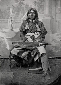 QUANAH PARKER (circa 1845 – 1911). Chefe comanche, filho de uma branca cativa Cynthia Ann Parker e do chefe comanche Peta Nocona. Ele comandou seu bando contra um grupo de caçadores de búfalos na Batalha de Adobe Walls em 1874, mas no ano seguinte rendeu-se ao exército. Uma vez instalado na reserva ele se adaptou à estrutura política da mesma e trabalhou para obter o melhor acordo quando o governo quis negociar os direitos fundiários dos índios em 1892. Culturalmente ele era um conservador, recusando a assimilação e é considerado o fundador da religião peyote ou Native American Church.