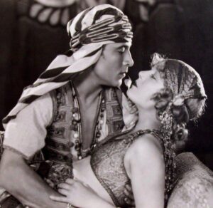 Valentino estreou na Famous Players em Paixão de Bárbaro como o Sheik Ahmed Ben Hassan, que sequestra uma inglesa, Lady Diana (Agnes Ayres), mulher supostamente moderna e independente, e depois de tratá-la barbaramente, se apaixona por ela. Baseado em um romance de Edith M. Hull, este drama romântico passado no deserto do Sahara, continha cenas ridículas e uma interpretação falsa e exagerada de Valentino, mas foi o filme mais famoso e o papel mais memorável do ator, com o qual, graças a seu enorme carisma e sensualidade, ele atingiu um status legendário.