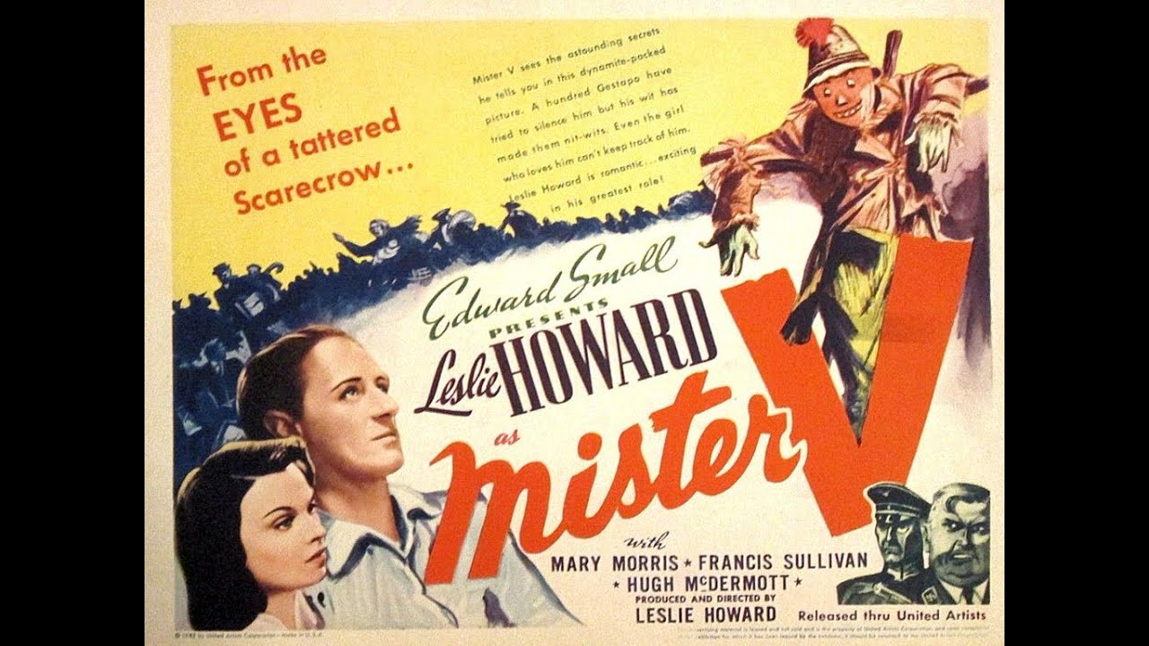 Mister V / Scarlet Pimpernel / 1941 volta ao thriller com Leslie Howard atualizando seu papel de Pimpinela Escarlate do filme de 1934, agora como um professor cujo raciocínio rápido está escondido sob a capa da distração e cuja preocupação é resgatar vítimas da perseguição nazista.