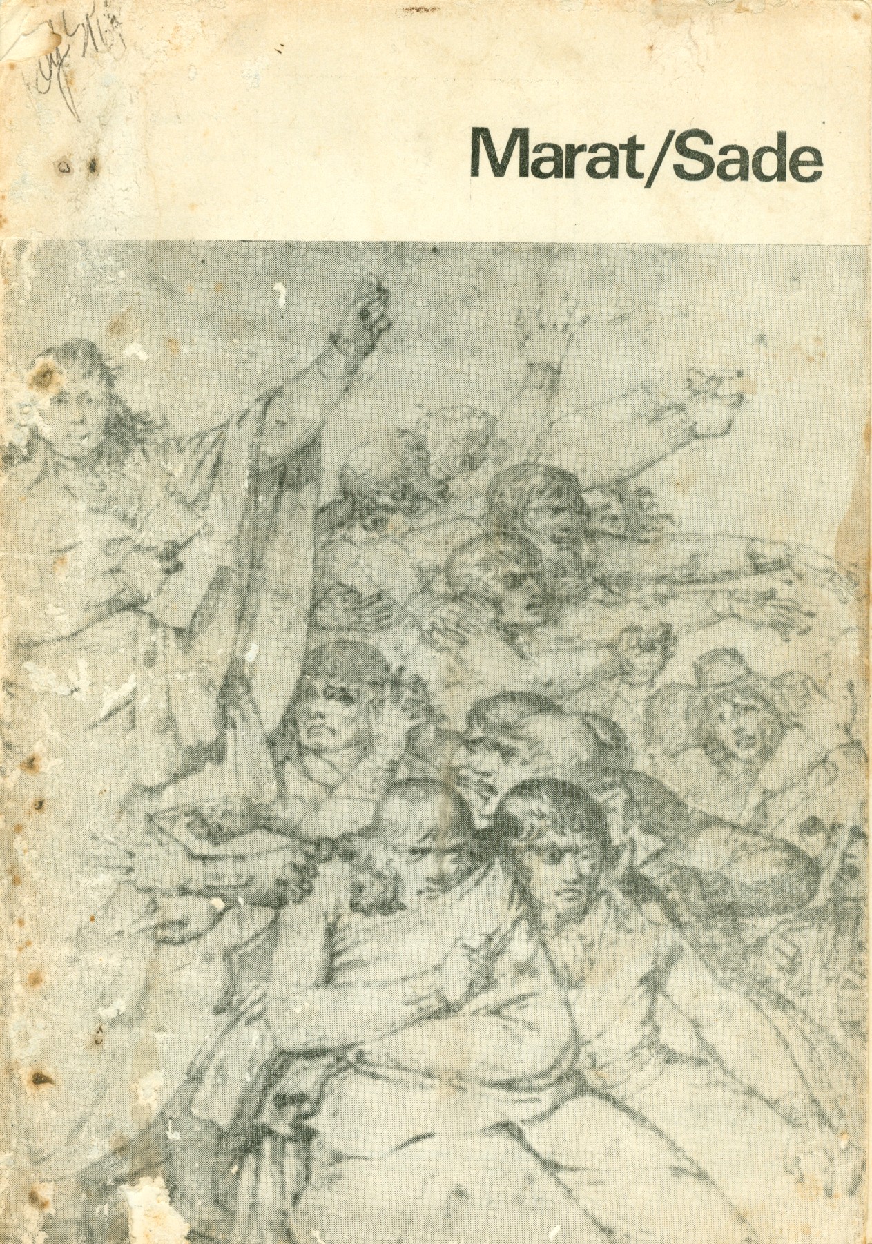 Outro espetáculo teatral que muito me impressionou foi Marat/Sade (A Perseguição e Assassinato de Jean-Paul Marat encenado pelos internos do Hospício de Charenton sob direção do Senhor de Sade), peça que vi durante minha lua-de-mel no Teatro Bela Vista, São Paulo, maravilhosamente dirigida em 1967 por Ademar Guerra e com um elenco encabeçado por Armando Bogus (Marat) e Rubens Corrêa (Sade). Quando os espectadores estavam ainda entrando na sala e procurando seus lugares, os loucos do hospício já estavam em cena, provocando um grande impacto visual, principalmente quando pulavam furiosos atrás das grades. E o desempenho de Rubens Corrêa mantendo o tempo todo aquele chiado de asmático era algo formidável em termos de composição do personagem.