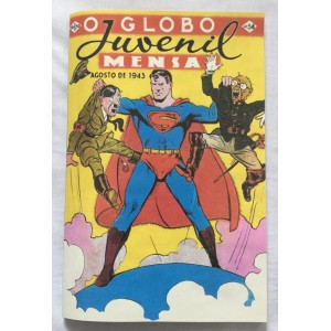 Durante a Segunda Guerra Mundial a capa da revistinha Superman #17 mostrava o Super-Homem agarrando Adolf Hitler e o Primeiro-Ministro do Japão, General Hideki Tojo, pelos colarinhos. Capa idêntica foi publicada em nosso país no O Globo Juvenil Mensal de agosto de 1943, que guardo até hoje com saudade do meu tempo de criança. Curiosamente, nesta edição o nosso herói não tem nenhuma aventura relacionada com a guerra – enfrenta a “Quadrilha Negra”, um terrível bando de criminosos. Quem confronta os agentes nazistas é o Tocha Humana e O Vingador. O Tocha Humana combate o capitão Von Spitz. O Vingador encara o Carrasco, um japonês corpulento e carrancudo e o Capitão Gestapo, que usa uma máscara com uma suástica no rosto e outra no peito .