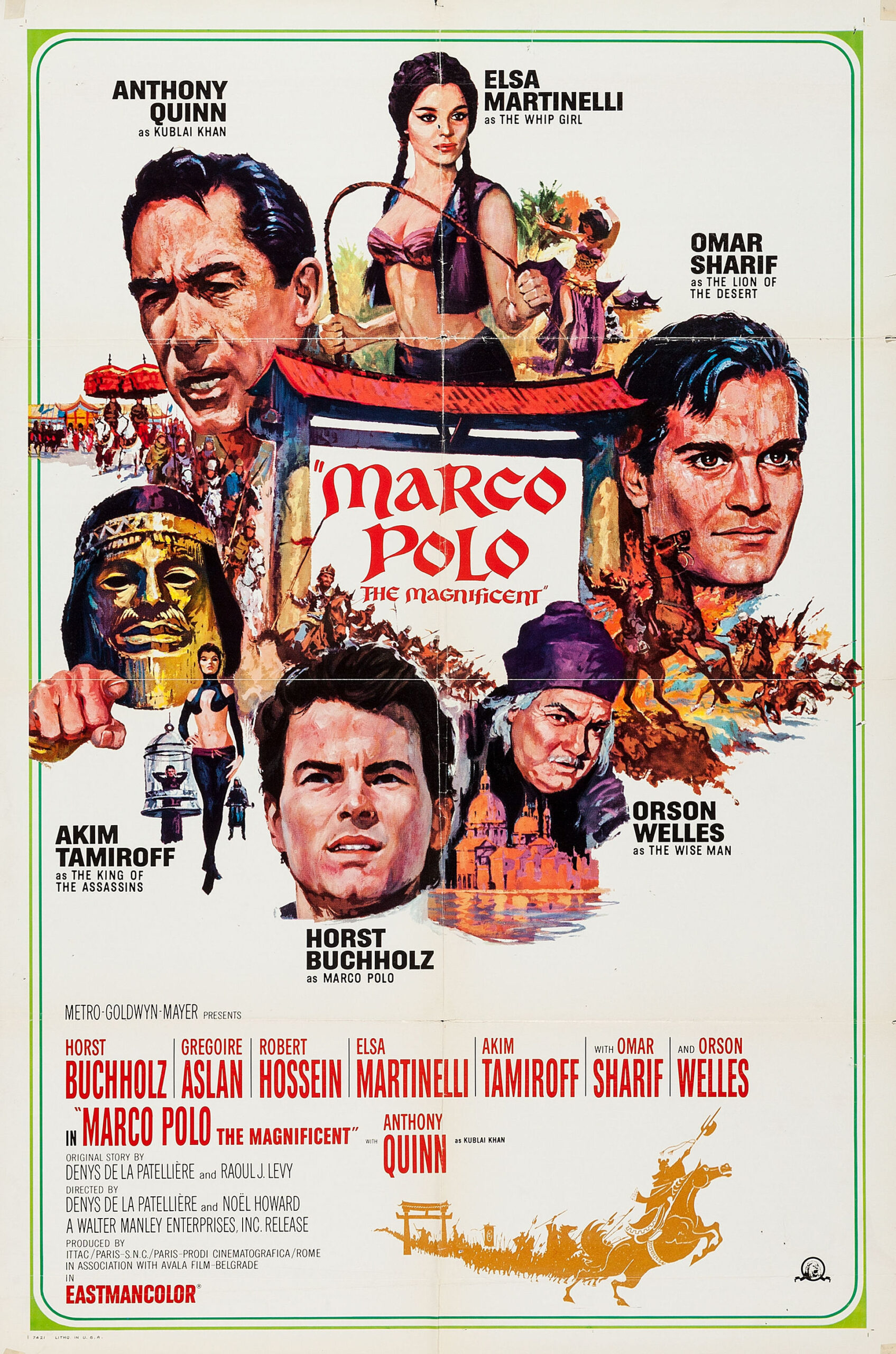 Starring Horst Buchholz, Anthony Quinn, Gregoire Aslan, Robert Hossein, Elsa Martinelli, Akim Tamiroff, Omar Sharif, Orson Welles. Directed by Denys de La Patelliere, Raoul Levy and Noel Howard.